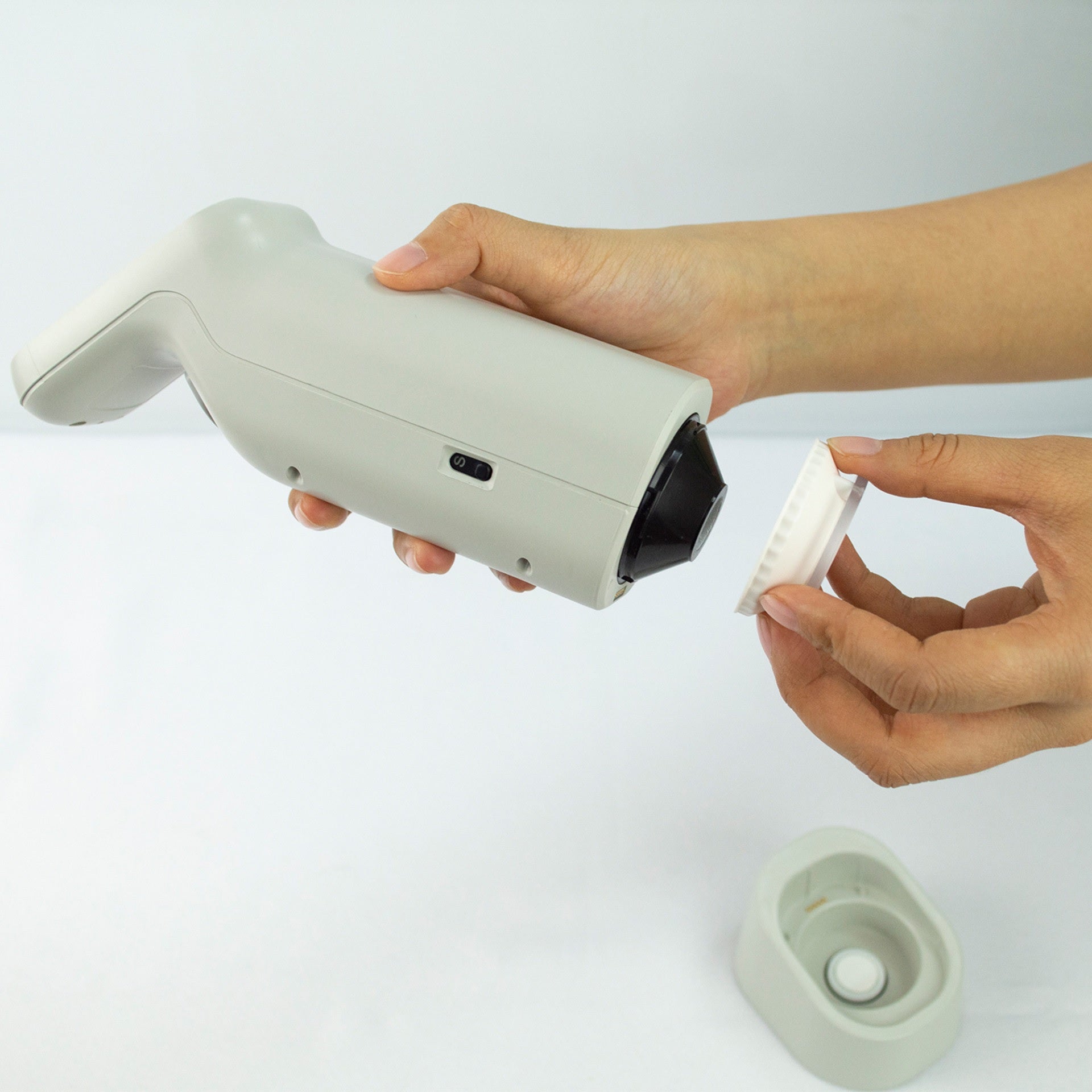 2. Casete dosificador de polvo con portaobjetos de vidrio transparente