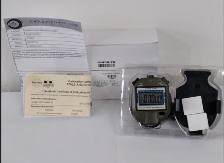La precisión es 0.001%. Para asegurar la exactitud, un Certificado Traceable® individualmente numerado en serie es proporcionado por nuestro laboratorio de calibración ISO 17025 acreditado por A2LA. Indica la trazabilidad a las normas proporcionadas por el NIST (Instituto Nacional de Estándares y Tecnología). Estuche de plástico ABS resistente al agua, sellado en O y resistente a los golpes, tiene lados de caucho antideslizante, ideales para uso en laboratorios y plantas. Como cronógrafo, la unidad muestra la hora del día en horas, minutos y segundos, AM / PM, fecha y día de la semana. También tiene una alarma de la hora del día. El cronómetro es 3 x 2-1 / 2 x 7/8 pulgadas y el peso es 2-1 / 2 onzas. Se suministra con velcro, certificado Traceable®, batería, cordón y clip.