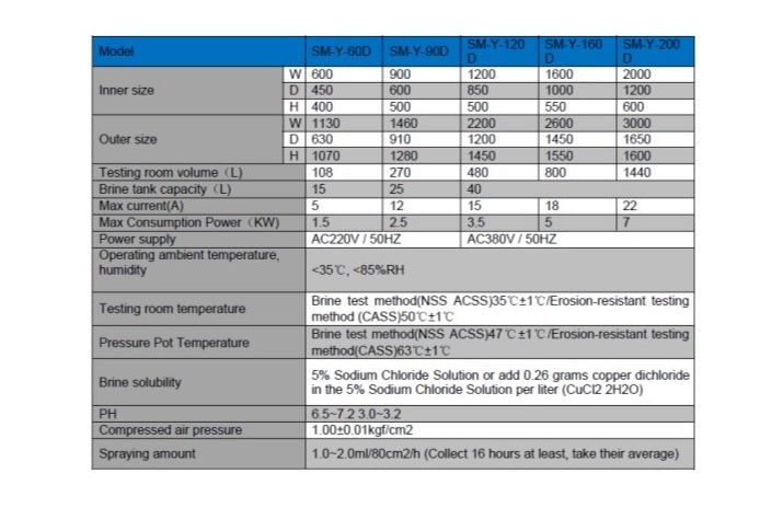 1. Tamaño interno de la cámara: 1600x550x1000mm (ancho x alto x profundidad).