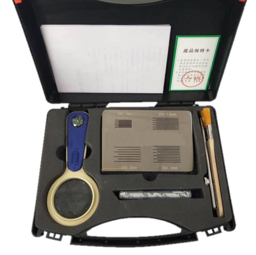 Regla de corte cruzado se utiliza para probar la adherencia de la película con el sustrato con 4 rangos de corte en 1+1.5+2+3mm de separacion entrega diente se trabaja con cutter y si requiere cumplir con la Norma Intl astmd 3359 se utiliza la cinta permacel con fuerza de 72 yardas se cotiza aparte.